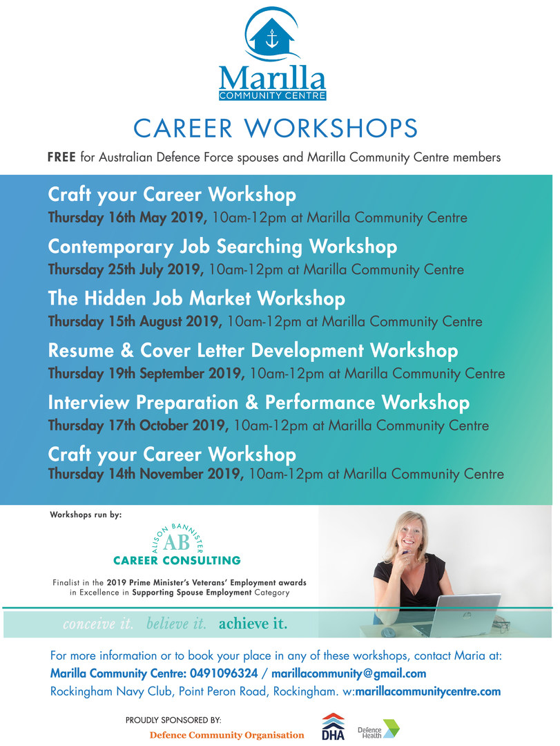 Our employment courses are back and they are FREE for all Marilla members and Defence families. These places will book out fast so book your place today not to miss out. Click on the ticket link below or email Marillacommunity@gmail.com for more information.